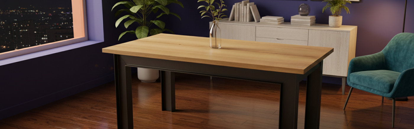 Velký jídelní stůl, kde se schází celá rodina na večeře plné smíchu a vedle v obýváku nízký konferenční, na kterém leží knížky, kafe nebo dálkový ovladač. Oba z pravého masivu,...
